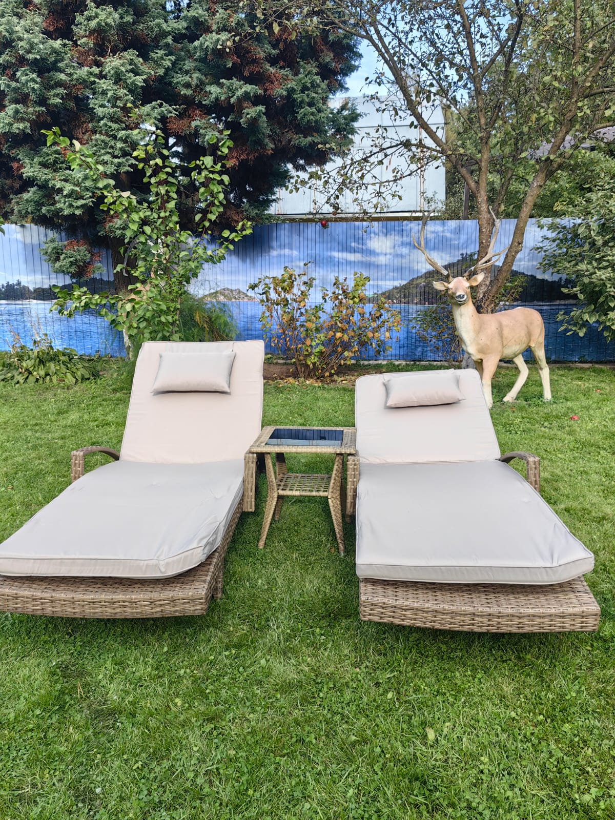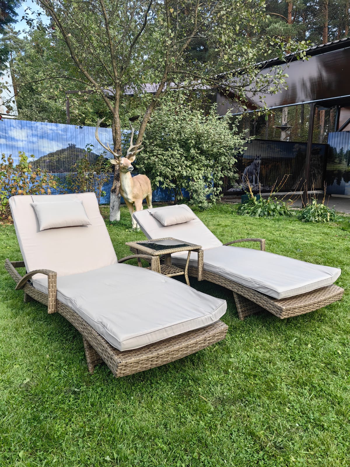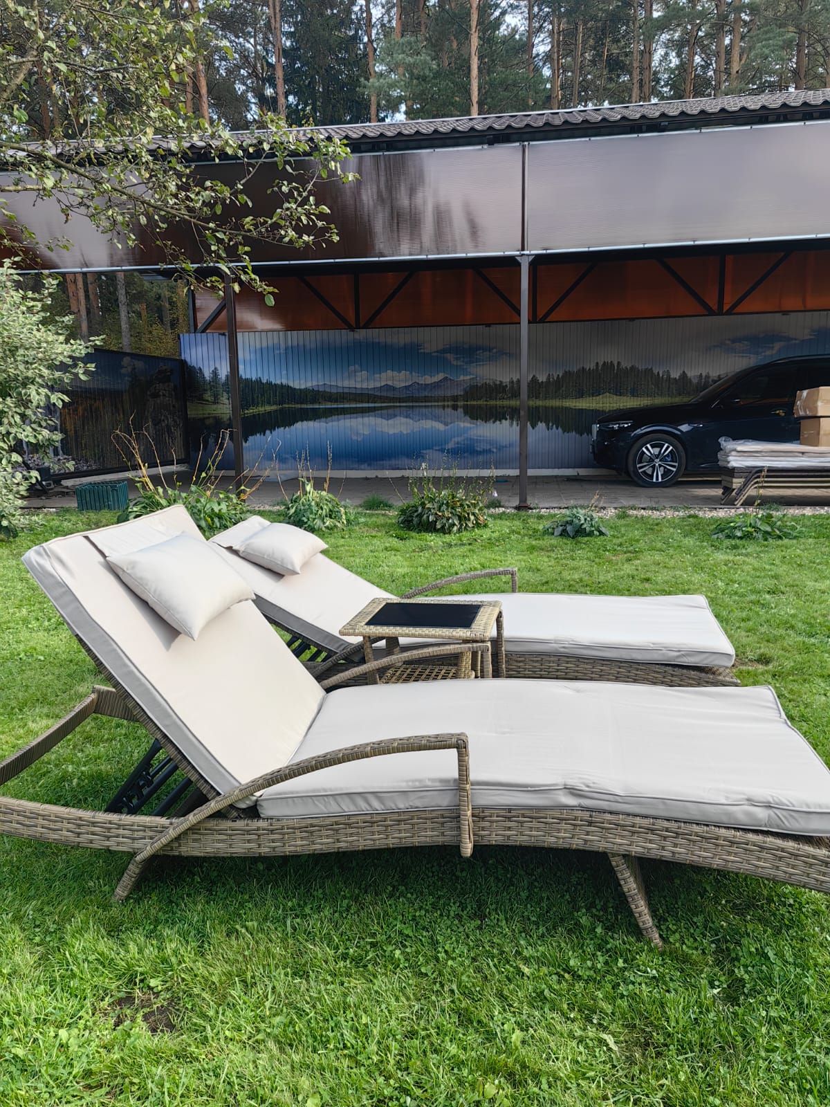 Комплект мебели из искусственного ротанга МАРА “MARA” Greige, 2 шезлонга с подлокотниками, столик