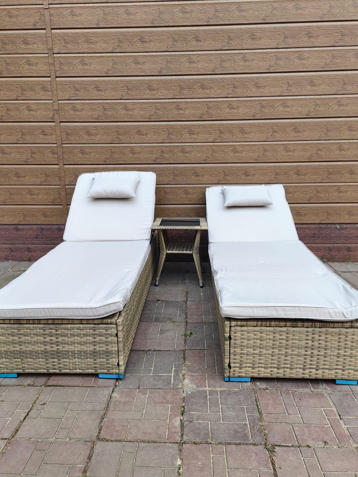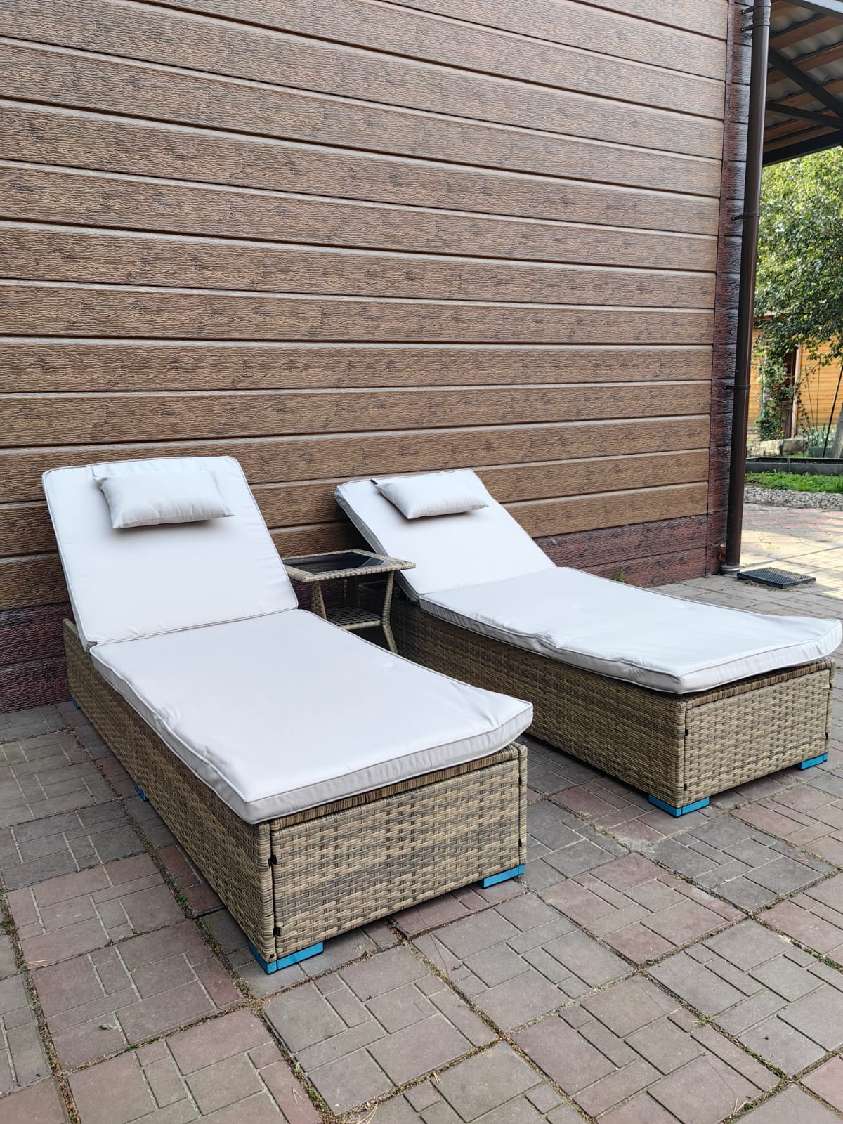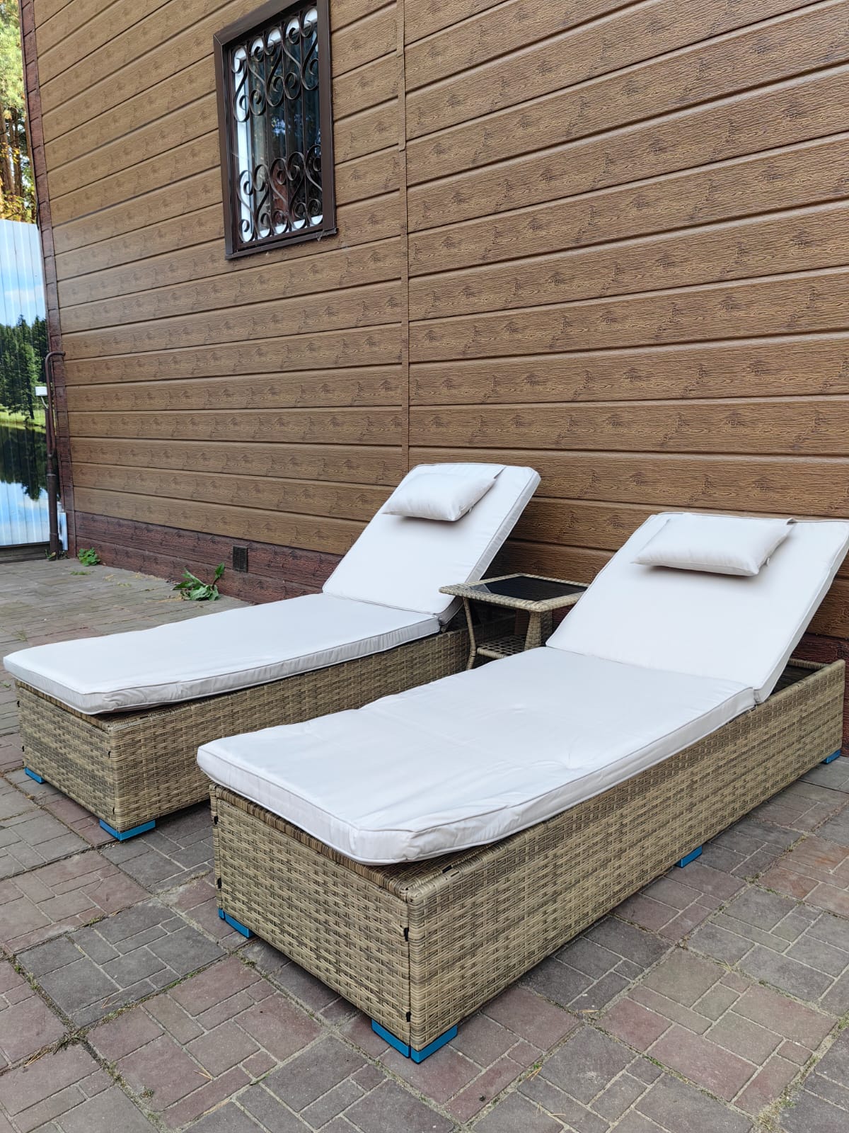 ✔️ Высокая прочность и долговечность конструкции, способной выдерживать вес до 150 кг каждый шезлонг.✔️ Практичность в уходе: мебель легко моется водой и мягкой губкой.✔️ Эстетика натурального материала: искусственное плетение выглядит дорого и стильно.✔️ Надежность и устойчивость к любым погодным условиям.✔️ Подходит для размещения как на улице, так и внутри помещений.