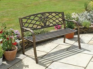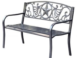 Более прочны металлические скамьи. Здесь разнообразие вариантов — цельнометаллические, кованные скамейки модерн или комбинированные. Наиболее распространенным вариантом являются комбинированные, недорогие скамьи, где спинка и сиденье деревянные, а для ножек применяется чугун, алюминий, сталь, бетон либо фигурные декоративные стальные элементы. Такое универсальное сочетание разных материалов создает необходимые для условий улицы факторы: они практичные, долговечные, комфортные и по приемлемой стоимости!
