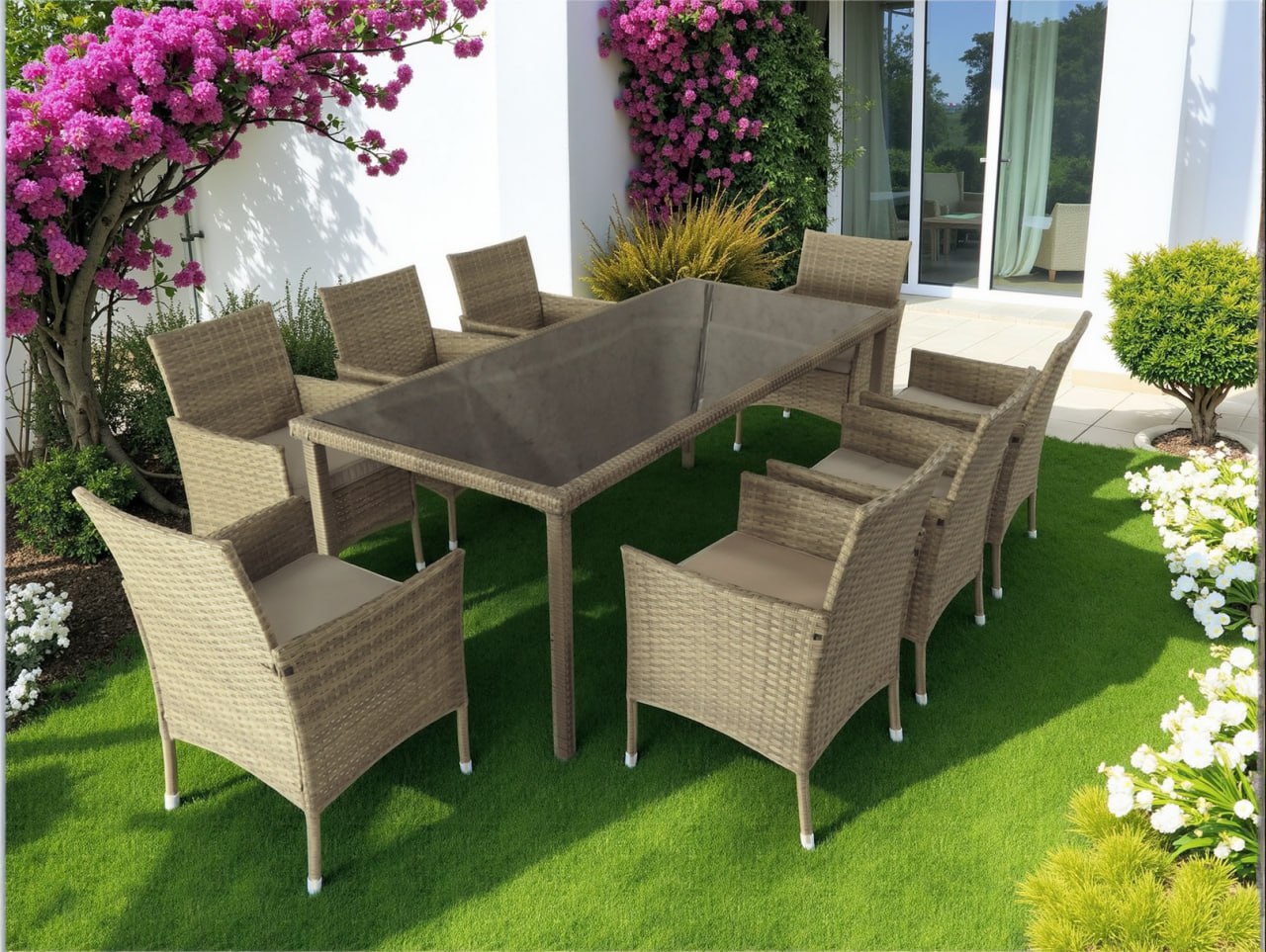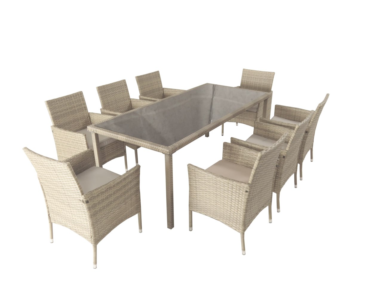 Обеденная группа из искусственного ротанга ЕГИПЕТ “EGYPT” состоит из 9 предметов – стол из искусственного ротанга + восемь кресел из искусственного ротанга, общий вес комплекта составляет 114,4 кг: