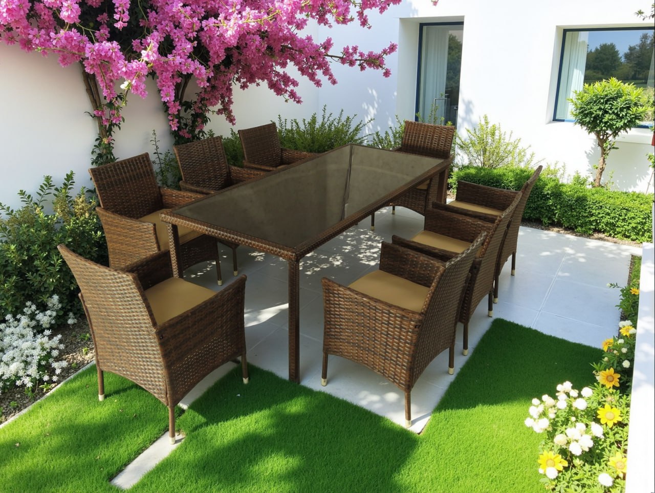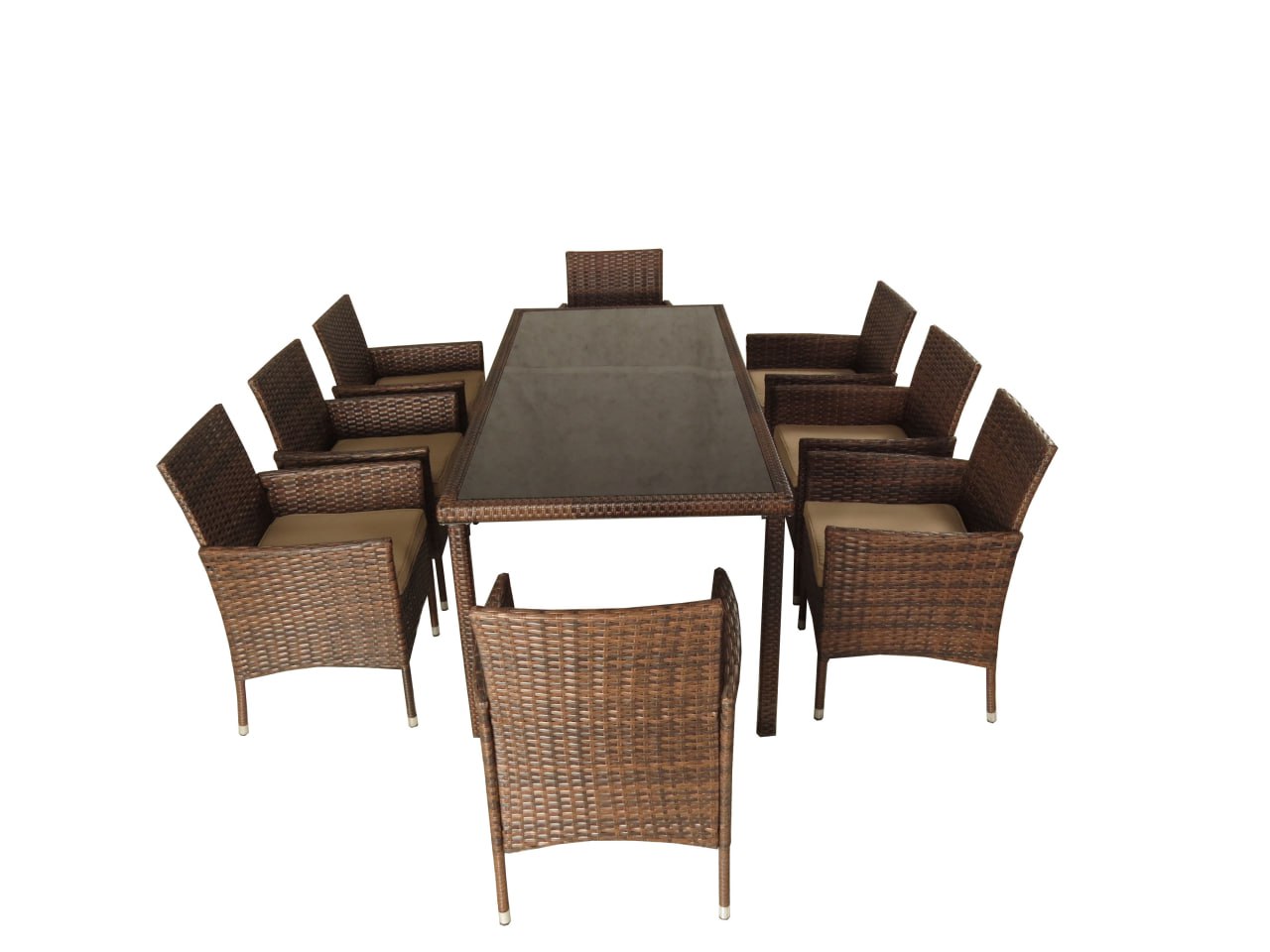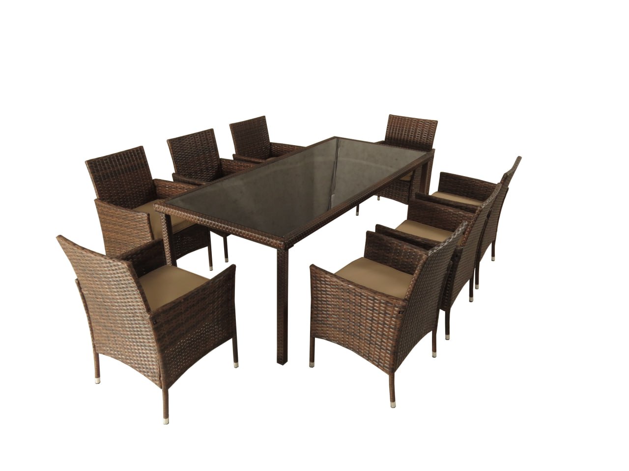 Обеденная группа из искусственного ротанга ЕГИПЕТ “EGYPT” состоит из 9 предметов – стол из искусственного ротанга + восемь кресел из искусственного ротанга, общий вес комплекта составляет 114,4 кг: