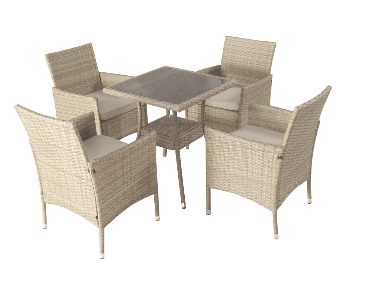 Количество мест: Набор рассчитан на 4 персоны, позволяя комфортно разместиться всей семье или небольшой компании друзей.