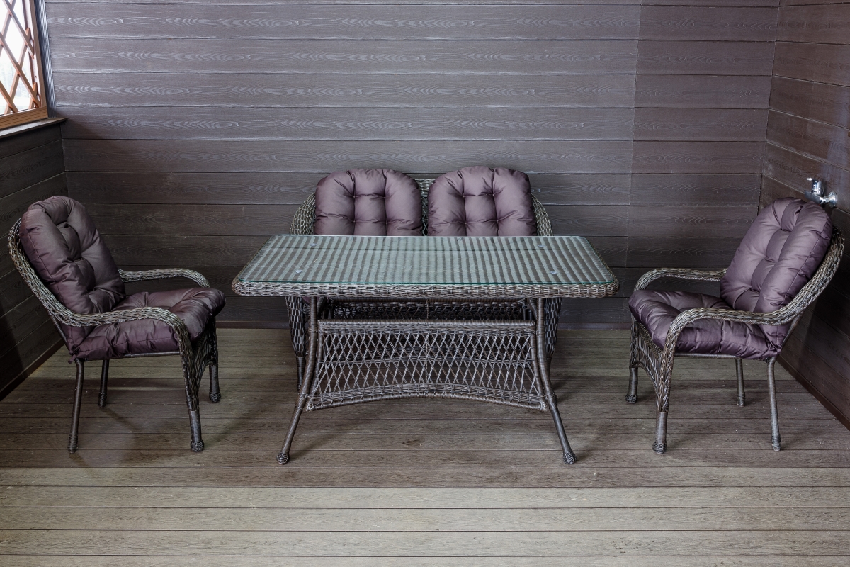 Комплект мебели из искусственного ротанга для сада или террасы включает в себя двухместный диван, два кресла и обеденный стол. Изготовленный из качественного материала, этот комплект не только привлекателен внешне, но и прочен и долговечен. Он идеально подойдет для отдыха с семьей и друзьями на свежем воздухе. Уютные кресла и удобный диван обеспечат комфортное сидение, а стильный обеденный стол станет идеальным местом для приема пищи или проведения приятных посиделок. Создайте уютную атмосферу на своем участке с помощью этого красивого и удобного комплекта мебели из искусственного ротанга.