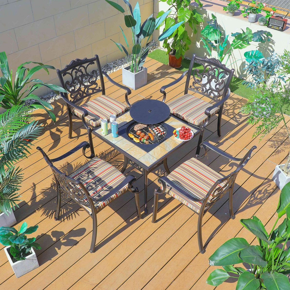 Стол квадратный с барбекю из литого алюминия БАРБЕКЮ-3 «BBQ-3» 70х70 арт.6348