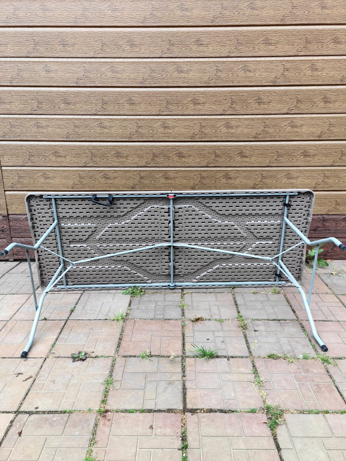 Универсальность: на садовых вечеринках, детских днях рождения, на торговых рынках, дома, в саду, на природе или для других мероприятий; Этот стол также можно использовать как приставной. Складной стол изготовлен из погодоустойчивого пластика со стальной конструкцией, которая отличается устойчивостью и долговечностью.